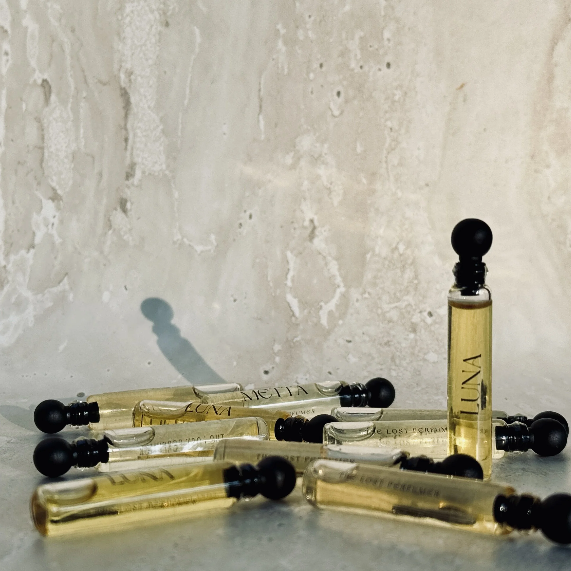 Luna – A natural perfume created to support emotional wellbeing, energetic balance, and feminine radiance. It opens with juicy Mandarin and nostalgic Champaca, blooming into opulent Jasmine Sambac and Ylang Ylang. Buddha Wood adds a honeyed warmth, while Vanilla Absolute finishes the scent with soft sweetness. Infused with Australian Bush Flower Essences: Macrocarpa, Fringed Violet, and Black-Eyed Susan.
